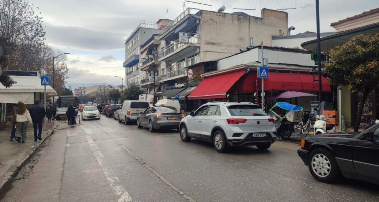 Με αργούς ρυθμούς και μετ’ εμποδίων διεξαγόταν σήμερα Δευτέρα, παραμονή της γιορτής των Θεοφανείων, η κυκλοφορία στο κέντρο των Τρικάλων.