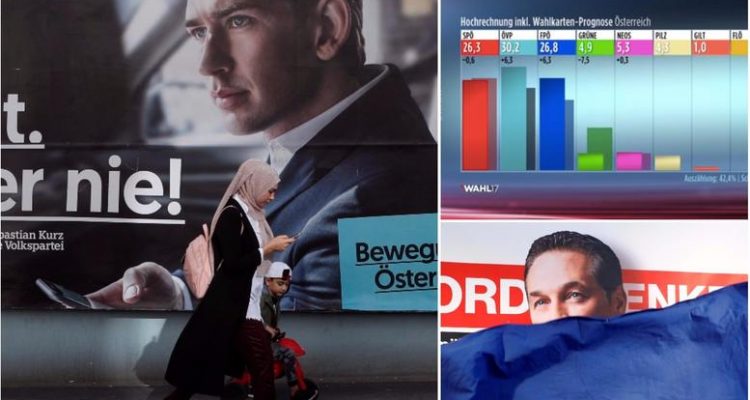 Σοκ στην Αυστρία και την Ευρώπη προκαλούν τα πρώτα exit poll από τις βουλευτικές εκλογές στη χώρα, που δείχνουν μεν στην πρώτη θέση το Λαϊκό κόμμα του Σεμπαστιαν Κουρτς, εμφανίζουν δε στη δεύτερη θέση και με ιδιαίτερα ενισχυμένα ποσοστά το ακροδεξιό κόμμα της Ελευθερίας.