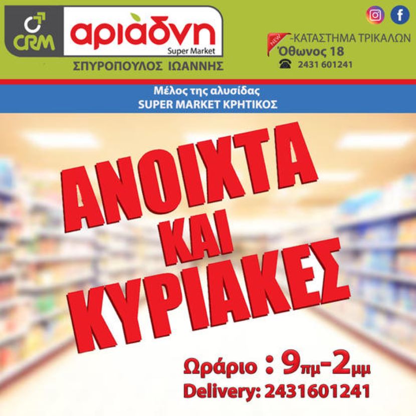 Το Σούπερ Μαρκετ «Αριάδνη» θέλοντας να συμβάλει στην ακόμα καλύτερη εξυπηρέτηση του καταναλωτικού κοινού, καινοτομεί για ακόμα μια φορά.