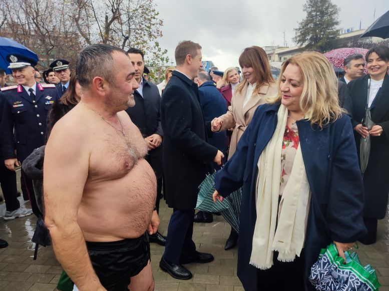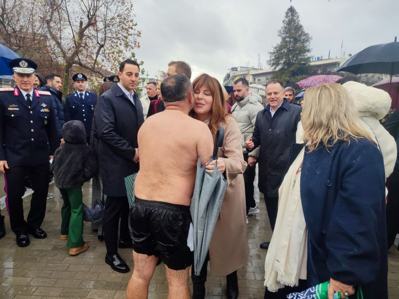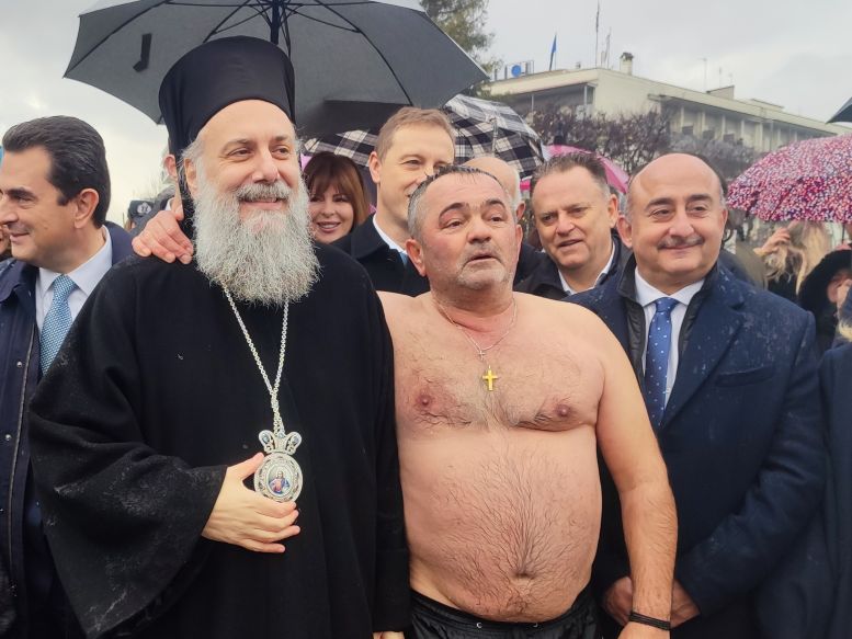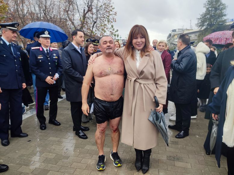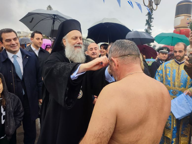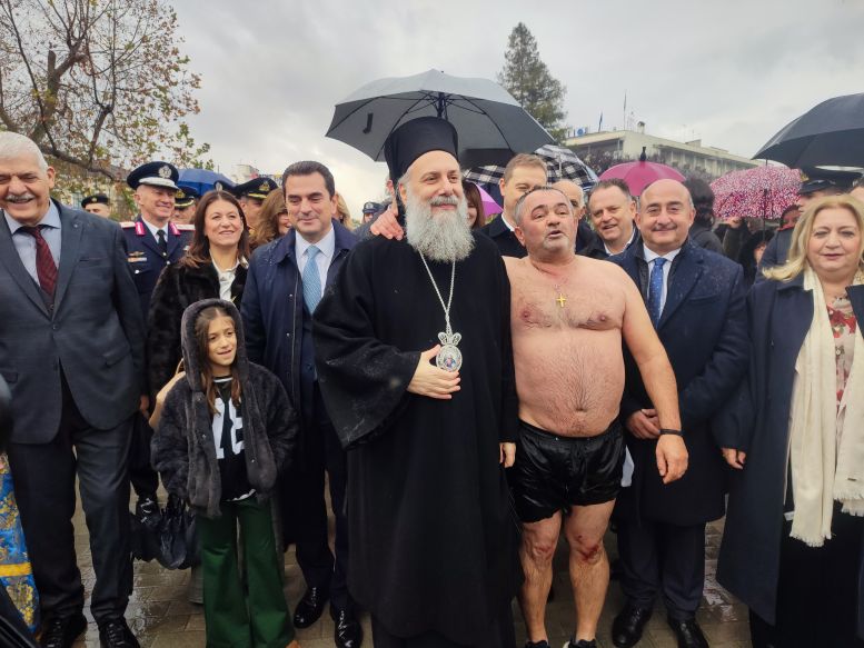 Το ενδιαφέρον δεν περιορίστηκε στο τελετουργικό. Με το που ανέσυρε τον σταυρό από τα νερά του Ληθαίου, ο Κώστας Θανασάκης βρέθηκε περικυκλωμένος από… θεσμικούς κάθε βαθμίδας. Δεσπότη, βουλευτές, δήμαρχος, αντιπεριφερειάρχης, αντιδήμαρχοι, αιρετοί έσπευσαν για μια φωτογραφία, λες και ο σταυρός είχε και προεκλογικές ιδιότητες.