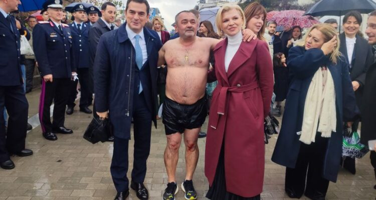 Το ενδιαφέρον δεν περιορίστηκε στο τελετουργικό. Με το που ανέσυρε τον σταυρό από τα νερά του Ληθαίου, ο Κώστας Θανασάκης βρέθηκε περικυκλωμένος από… θεσμικούς κάθε βαθμίδας. Δεσπότη, βουλευτές, δήμαρχος, αντιπεριφερειάρχης, αντιδήμαρχοι, αιρετοί έσπευσαν για μια φωτογραφία, λες και ο σταυρός είχε και προεκλογικές ιδιότητες.