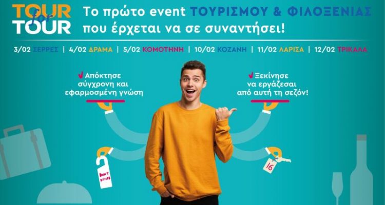 Η εταιρία εκπαίδευσης και διαχείρισης Ανθρώπινου Δυναμικού AA+Partners, διοργανώνει για πρώτη φορά την πρωτοπόρα για τα ελληνικά δεδομένα περιοδεία “TOUR FOR TOUR 2023” σε έξι πόλεις τις Β. Ελλάδος. Η διοργάνωση στοχεύει στην ενημέρωση και δωρεάν εκπαίδευση όσων επιθυμούν να κάνουν καριέρα στον τομέα του τουρισμού και της φιλοξενίας. Καταρτισμένα στελέχη του χώρου, εκπαιδευτές της καταξιωμένης στον χώρο, AA+Partners και εκπρόσωποι εταιρειών του ξενοδοχειακού κλάδου θα πραγματοποιήσουν κατά τόπους παρουσιάσεις και ομιλίες τόσο για τις προοπτικές σταδιοδρομίας στον τουρισμό αλλά και για τις νέες τάσεις και εξελίξεις που επηρεάζουν την ελληνική αγορά.