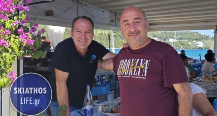 Σήμερα ο φακός του Skiathoslife.gr τον συνέλαβε να απολαμβάνει εκλεκτούς μεζέδες στην γνωστή ψαροταβερνά “Ακρογιάλι” του συντοπίτη του και γεννημένο στον Πρόδρομο Τρικάλων Κωνσταντίνο Γεωργούλα. Αλλωστε ο νέος Δήμαρχος Τρικκαίων διαθέτει το δικό του ησυχαστήριο στο νησί του Παπαδιαμάντη στο νέο λιμάνι. Ευδιάθετος και φανερά ικανοποιημένος από το αποτέλεσμα της Τρίτης δέχτηκε να αποθανατίσουμε την στιγμή.