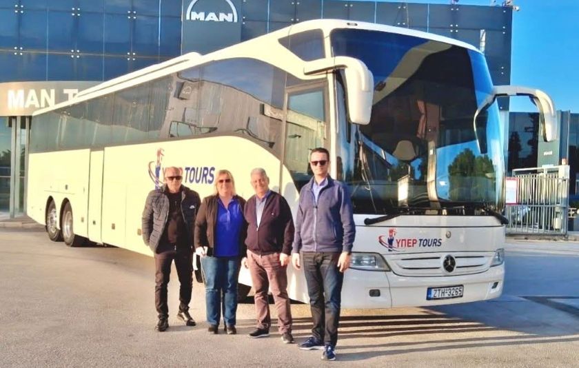 Το νέο λεωφορείο, ένα τριαξονικό Μercadesπαρέλαβαν από την κ. Χριστίνα Καμακάρη, υπεύθυνη του τμήματος πωλήσεων του ομίλου, ο Πρόεδρος του Υπεραστικού ΚΤΕΛ Τρικάλων κ.Σωτήρης Βησσαράκος και ο Αντιπρόεδρος κ. Δημήτριος Βράκας.