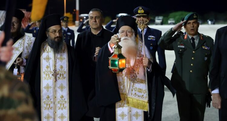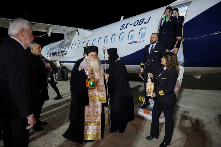 Το Άγιο Φως μεταφέρθηκε από την Αθήνα με ειδική πτήση, προκειμένου να διασφαλιστεί η έγκαιρη διανομή του σε όλες τις ενορίες και τους ιερούς ναούς της ευρύτερης περιφέρειας ενόψει της Αναστάσιμης Ακολουθίας.