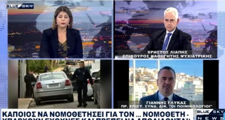Στο Κεντρικό Δελτίο Ειδήσεων του τηλεοπτικού σταθμού Blue Sky εμφανίστηκε ο Επικ. Καθηγητής Ψυχιατρικής του Δημοκρίτειου Πανεπιστημίου Θράκης και Αναπλ. Πρόεδρος του Επιστημονικού Συμβουλίου του ΚΕΘΕΑ, Χρίστος Λιάπης για το θέμα της επικινδυνότητας των ψυχικώς πασχόντων, με αφορμή το έγκλημα στη Γλυφάδα.