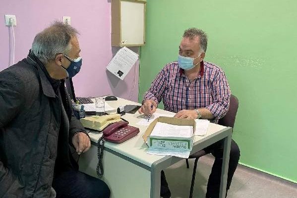 Λίγο πριν κάνει το εμβόλιο, ο Χρήστος Μιχαλάκης είχε μια σύντομη συνομιλία με τον Συντονιστή του εμβολιαστικού κέντρου Γιάννη Κουτσονάσιο, ο οποίος ενημερώθηκε για το ιατρικό του ιστορικό.