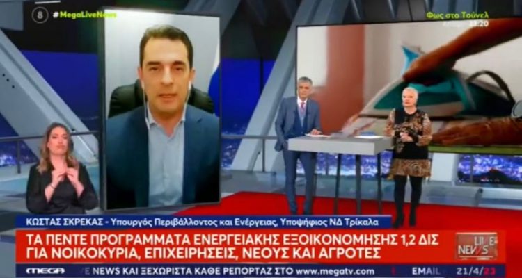 Στο ενεργειακό θαύμα που κατάφερε η χώρα τα τελευταία τρία χρόνια αναφέρθηκε ο υπουργός Περιβάλλοντος και Ενέργειας, Κώστας Σκρέκας, μιλώντας σε ζωντανή σύνδεση από τα Τρίκαλα, στην εκπομπή του Νίκου Ευαγγελάτου LIVE NEWS στο MEGA.