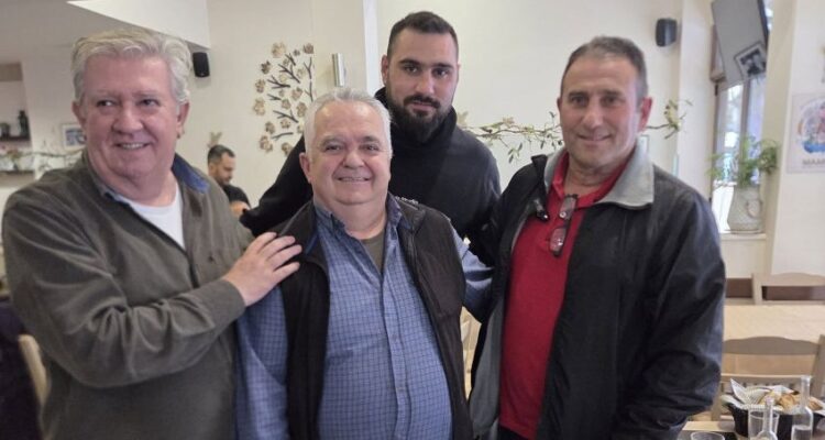 Στο φωτογραφικό στιγμιότυπο ο Θοδωρής Παχατουρίδης εμφανώς χαρούμενος, ανάμεσα στους Τρικαλινούς Βασίλη Αγγούμη, Γιώργο Μαργαρίτη και Δημήτρη Παπασπύρου.