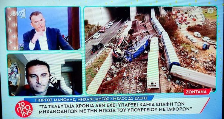 Στην εκπομπή «Το πρωινό» με τον Γιώργο Λιάγκα στον ΑΝΤ1, εμφανίστηκε το πρωί της Τρίτης ο πρώην Γραμματέας της ΝΕ Τρικάλων του ΠΑΣΟΚ Γιώργος Μανώλης, με την ιδιότητα του ως μηχανοδηγός και μέλος του Δ.Σ. της ΕΛΞΗΣ.