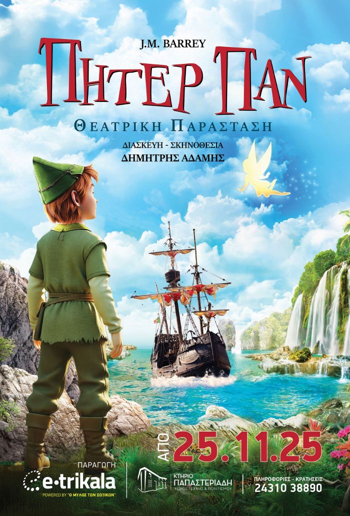 Η e-trikala παρουσιάζει στο κτήριο Παπαστεριάδη καθημερινά παραστάσεις για τα σχολεία και το κοινό, το έργο «Πίτερ Παν» του J.M. Barrie, σε διασκευή-σκηνοθεσία του Δημήτρη Αδάμη.