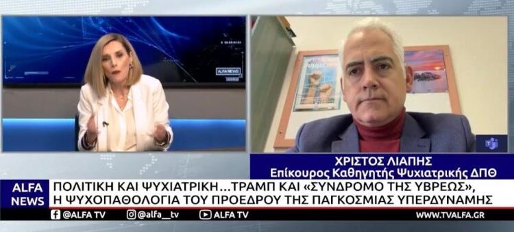 Στο ΚΕΝΤΡΙΚΟ ΔΕΛΤΙΟ ΕΙΔΗΣΕΩΝ του ΑLFA TV της Θράκης, φιλοξενήθηκε, στις 03. 03. 2026, από τη δημοσιογράφο Κυριακή Μπασκάκη, ο Επίκ. Καθηγητής Ψυχιατρικής του Δημοκρίτειου Παν/μιου Θράκης και Αναπλ. Πρόεδρος του Επιστημονικού Συμβουλίου του ΕΟΠΑΕ, Χρίστος Χ. Λιάπης, συζητώντας για την ψυχολογική διάσταση των πολιτικών αποφάσεων κατά την τρέχουσα κρίση στη Μέση Ανατολή.