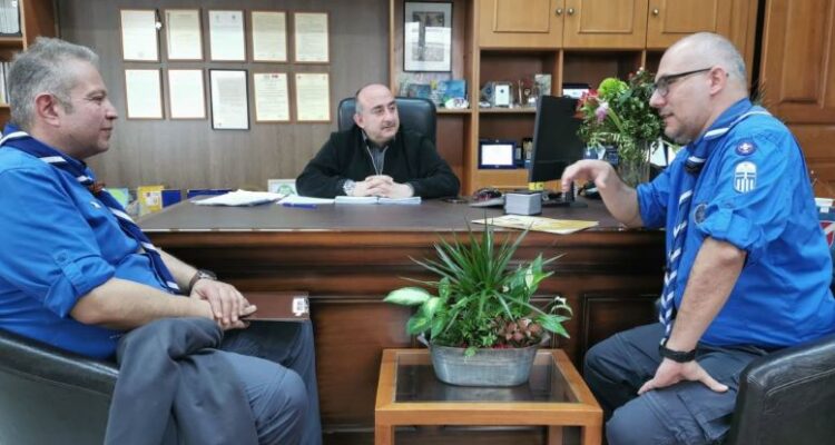 Εθιμοτυπική επίσκεψη στον Δήμαρχο Τρικκαίων και Πρόεδρο της ΠΕΔ Θεσσαλίας πραγματοποίησαν στελέχη των προσκόπων. Ο κ. Αντώνης Ευαγγέλου, περιφερειακός έφορος προσκόπων κεντρικής και δυτικής Θεσσαλίας και ο κ. Νίκος Δημακόπουλος, αρχηγός του 4ου συστήματος Προσκόπων Τρικάλων επισκέφθηκαν τον κ. Σακκά στο Δημαρχείο Τρικκαίων την Πέμπτη 29 Φεβρουαρίου 2024. Αντικείμενο της συζήτησης, εκτός των ευχών, η συνέχιση της συνεργασίας με γνώμονα την κοινωνική προσφορά.
