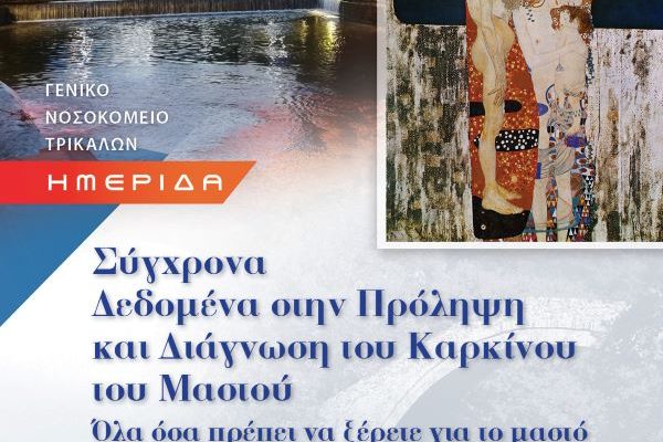 Βρισκόμαστε στην ευχάριστη θέση να σας ανακοινώσουμε ότι θα διεξαχθεί στα Τρίκαλα το Σάββατο 21 Οκτωβρίου 2023, Ημερίδα με θέμα «Σύγχρονα δεδομένα στην πρόληψη και διάγνωση του καρκίνου του μαστού-Όλα όσα πρέπει να ξέρετε για τον μαστό».
