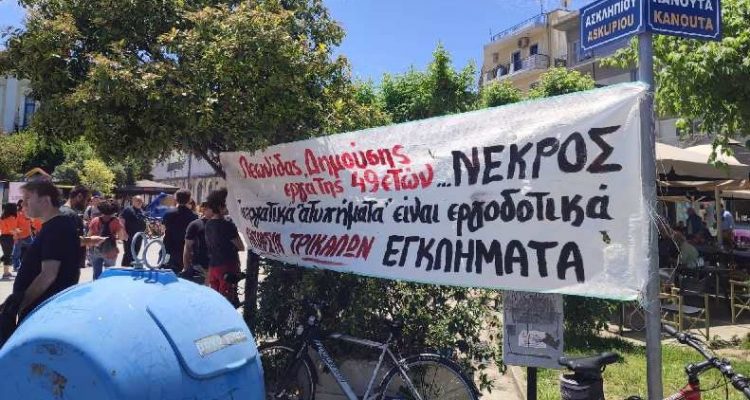 Συγκέντρωση διαμαρτυρίας για το πρόσφατο εργατικό ατύχημα σε γαλακτοβιομηχανία των Τρικάλων, με συνέπεια τον τραγικό θάνατο του 49χρονου εργαζόμενου Λεωνίδα Δημούση, πραγματοποίησαν το πρωί του Σαββάτου τα μέλη της Λέσχης εργασίας, αλληλεγγύης και πολιτισμού στην πλατεία Ρήγα Φεραίου της πόλης.