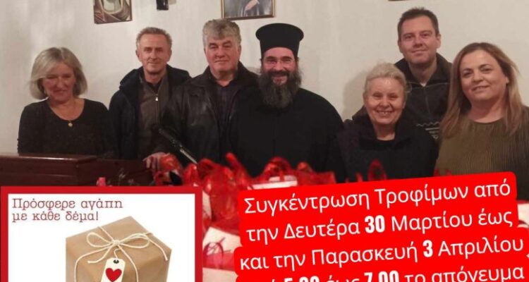 Από τη Δευτέρα 30 έως και την Παρασκευή 3 Απριλίου 2026 το απόγευμα και από ώρα 5.00 έως 7.00, στην αίθουσα της Χριστιανικής Αδελφότητας ΕΛΕΗΜΩΝ ΣΑΜΑΡΕΙΤΗΣ (Στουρνάρα 11, Τρίκαλα), θα συλλέγονται τρόφιμα και είδη πρώτης ανάγκης για το Πασχαλινό δέμα που ετοιμάζει κάθε χρόνο η Αδελφότητα, προσφέροντας σε οικογένειες που έχουν ανάγκη.