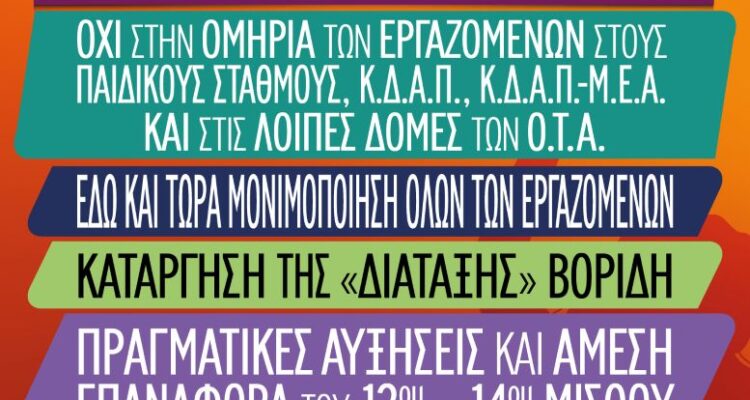 «Άμεση Μονιμοποίηση χωρίς δυσμενείς όρους και προϋποθέσεις όλων ανεξαιρέτως των υπαλλήλων με επαναλαμβανόμενες συμβάσεις ΕΣΠΑ, στους ΠΑΙΔΙΚΟΥΣ, ΒΡΕΦΟΝΗΠΙΑΚΟΥΣ & ΒΡΕΦΙΚΟΥΣ ΣΤΑΘΜΟΥΣ και στα ΚΕΝΤΡΑ ΔΗΜΙΟΥΡΓΙΚΗΣ ΑΠΑΣXΟΛΗΣΗΣ (ΚΔΑΠ) & ΚΕΝΤΡΑ ΔΗΜΙΟΥΡΓΙΚΗΣ ΑΠΑΣΧΟΛΗΣΗΣ ΜΕΑ (ΚΔΑΠ ΜΕΑ)»