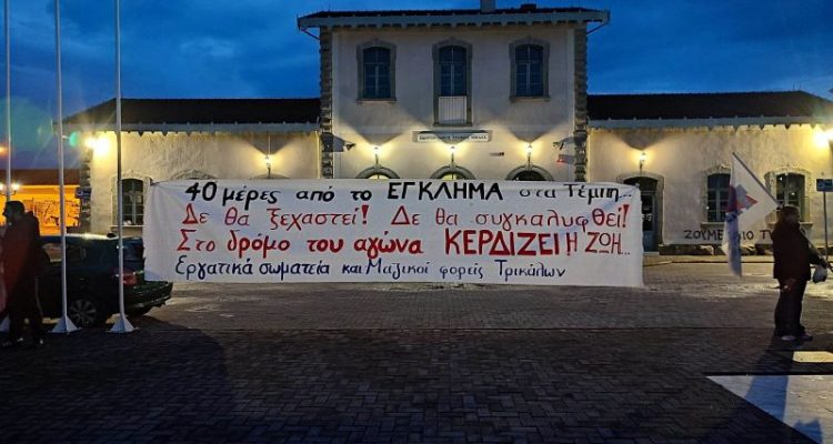 Με κεντρικό σύνθημα «Δεν θα ξεχαστεί, δεν θα συγκαλυφθεί», μέλη συλλογικοτήτων και εκπρόσωποι σωματείων, πραγματοποίησαν το απόγευμα της Δευτέρας, συμβολική παράσταση διαμαρτυρίας για το τραγικό δυστύχημα στα Τέμπη, με αφορμή την συμπλήρωση 40 ημερών από τον άδικο θάνατο 57 αθώων ψυχών.