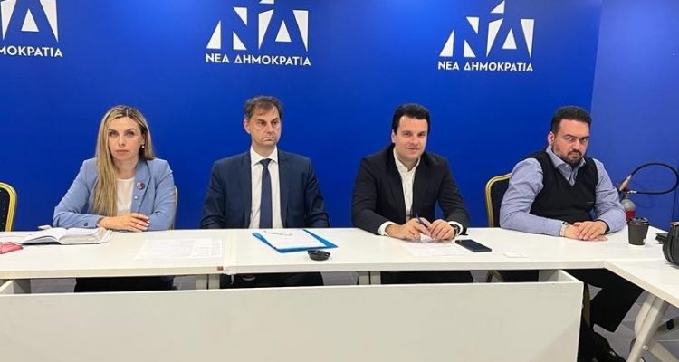 Στα πλαίσια των συνεχών ενημερωτικών επαφών εν όψει κατάρτισης του νέου Κυβερνητικού Προγράμματος, η αρμόδια Γραμματεία της Νέας Δημοκρατίας υπό τον Γραμματέα Χάρη Θεοχάρη και τους Αν. Γραμματείς Γιώργο Βλαχογιάννη, Αντωνία Δήμου και Σταύρο Βουρλούμη, συναντήθηκε στα γραφεία του κόμματος στην οδό Πειραιώς με φορείς και σωματεία των κλάδων Υγείας.