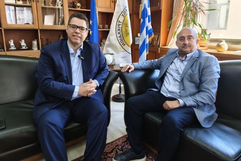 Τον πρόεδρο της ΠΕΔ Θεσσαλίας υποδέχτηκε ο κος ΧΡΥΣΤΟΦΟΡΟΣ ΡΟΜΠΟΣ πρόεδρος του e-trikala Δημοτικός Σύμβουλος Δήμου Τρικκαίων.