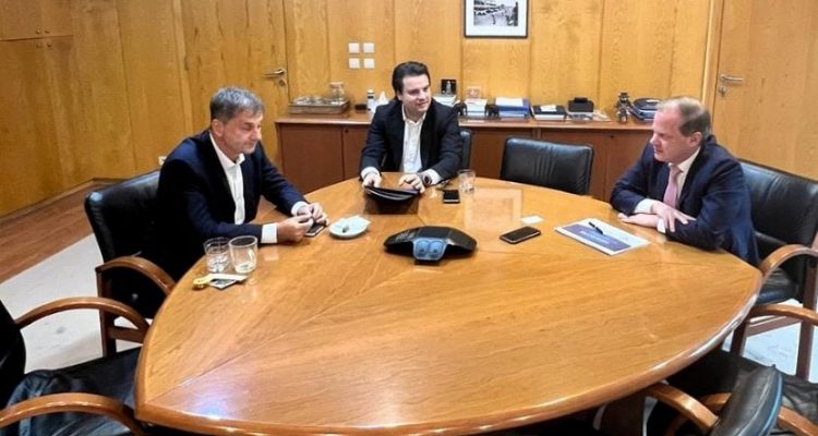 Με τον Υπουργό Υποδομών και Μεταφορών Βουλευτή Σερρών Κωνσταντίνο Καραμανλή, συναντήθηκαν σήμερα ο Γραμματέας Προγράμματος της ΝΔ Χάρης Θεοχάρης και ο Αναπλ. Γραμματέας Γιώργος Βλαχογιάννης.