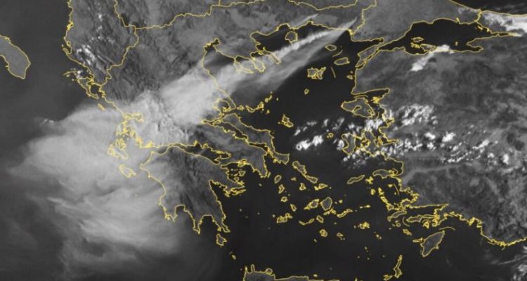 Πιο συγκεκριμένα, διακρίνεται η μεταφορά του καπνού πάνω από το Αιγαίο και στα Τρίκαλα από τις δασικές πυρκαγιές σε Έβρο και Ροδόπη, καθώς και από την πυρκαγιά πάνω από τη Βοιωτία.
