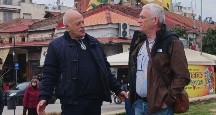 Πιστοί στο καθήκον που ετάχθησαν, ο επικεφαλής της “Λαϊκής Συσπείρωσης” στο Δήμο Τρικκαίων Γιώργος Καϊκης και ο Πρόεδρος του Εργατικού Κέντρου Τρικάλων Δημήτρης Αρμάγος.