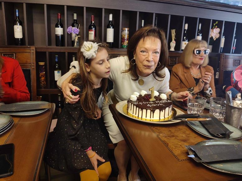 Η εορτάζουσα έσβησε και το απαραίτητο κεράκι της τούρτας που μοιράστηκε σε όλες τις καλεσμένες, παρέα με την εγγονούλα της Που έχει το όνομα της!