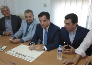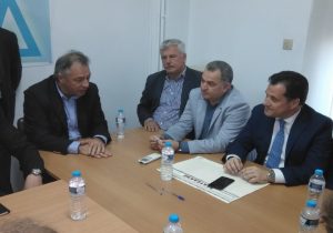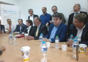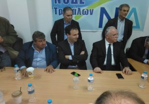 Στα γραφεία της ΝΟΔΕ, είχε συνάντηση κεκλεισμένων των θυρών, με τον Αντιπεριφερειάρχη Τρικάλων Χρήστο Μιχαλάκη και τους τέσσερις Δημάρχους του νομού, Δημήτρη Παπαστεργίου, Χρήστο Σινάνη, Θανάση Μεριβάκη και Κώστα Μαράβα, από τους οποίους ενημερώθηκε για θέματα και προβλήματα που απασχολούν το νομό.