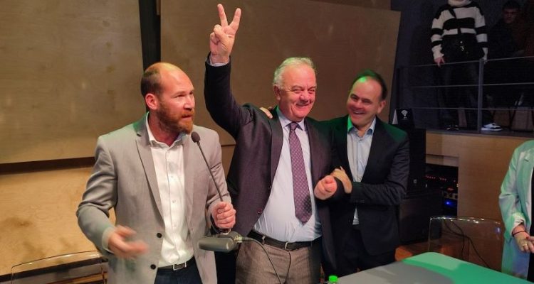 Πάντως στο τέλος της εκδήλωσης ο Γραμματέας Γιάννης Τριγώνης και οι υποψήφιοι Βουλευτές Σωτήρης Μπλέτσας και Γιώργος Οικονόμου, ήταν ιδιαίτερα διαχυτικοί προς το κοινό στις κερκίδες, σχηματίζοντας το σήμα της νίκης! Για να δούμε τι θα δούμε…