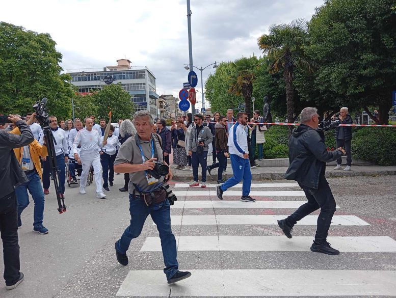 Οι λαμπαδηδρόμοι μεταξύ των οποίων οι δύο παγκόσμιοι πρωταθλητές Χρήστος Παπανικολάου και Σοφία Σακοράφα μετέφεραν τη φλόγα και το ολυμπιακό μήνυμα της ειρήνης, κατά την εκδήλωση της επίσημης υποδοχής της Ολυμπιακής φλόγας.