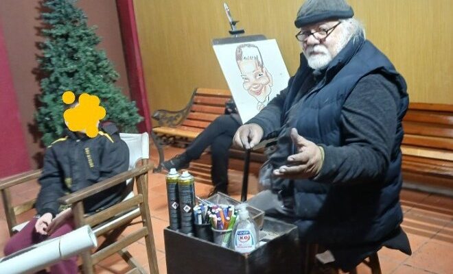 Ο λόγος για τον διάσημο Τρικαλινό καλλιτέχνη-σκιτσογράφο Απόστολο Κουρσοβίτη, τον επονομαζόμενο και ως Κουρσό, που και τις φετινές γιορτές είναι κανονικά στο πόστο του στο «Μύλο των Ξωτικών», έτοιμος για τις πιο…τρελές καρικατούρες της ζωής σας!
