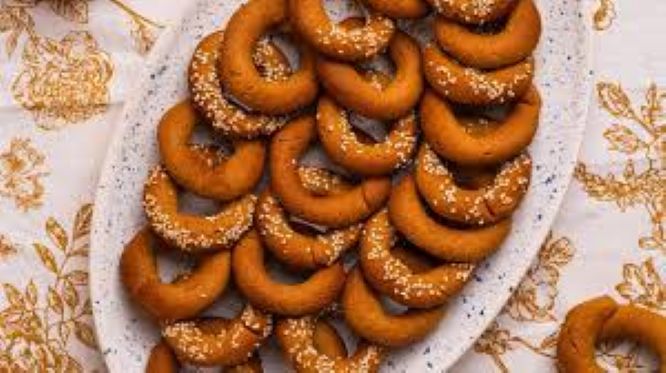 - Βάζουμε το σουσάμι σε μπολάκι και πασπαλίζουμε με αυτό τα μισά κουλουράκια, να κολλήσει καλά πάνω τους. Τα άλλα μισά τα αφήνουμε χωρίς σουσάμι.