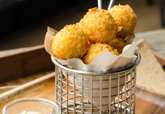 - Ζεσταίνουμε λάδι στους 170-175°C και τηγανίζουμε τις τυροκροκέτες για 2-3 λεπτά μέχρι να ροδίσουν.