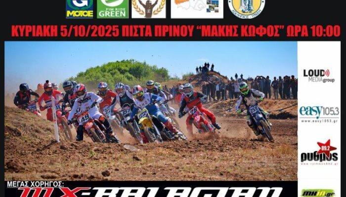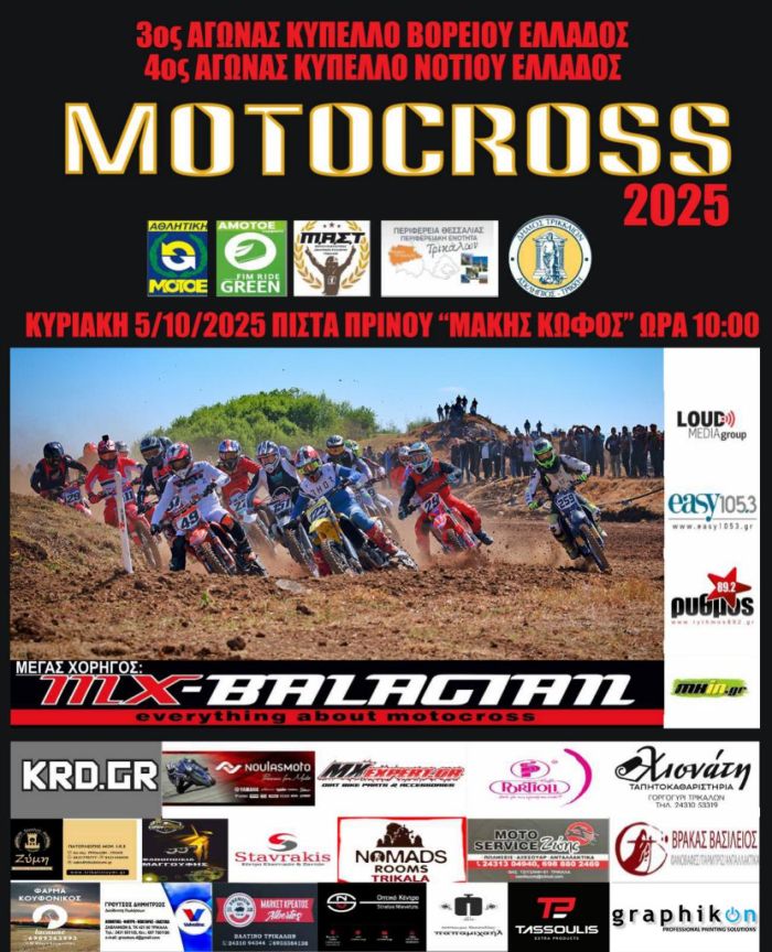Δύο αγώνες Πανελληνίου Κυπέλλου και Πρωταθλήματος Motocross φιλοξενεί η πίστα στον Πρίνο του Δήμου Τρικκαίων. Την Κυριακή 5 Οκτωβρίου διεξάγονται στην πίστα «Μάκης Κωφός», ο 3ος αγώνας Κυπέλλου Β. Ελλάδας και ο 4ς Αγώνας κυπέλλου Ν. Ελλάδας. Την Κυριακή 19 Οκτωβρίου διεξάγεται ο 6ος αγώνας για το Πανελλήνιο Πρωτάθλημα. Ολοι οι αγώνες ξεκινούν στις 10 και οι απονομές, τη μεν Κυριακή 5/10 στις 18:00 τη δε Κυριακή 19/10 στις 17:30.