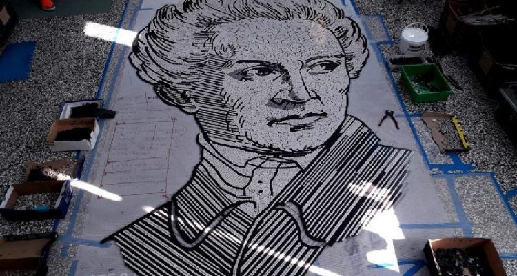 Αυτή την φορά με επίσης μεγάλη τέχνη, υπομονή και μεράκι, φιλοτεχνούν το πορτρέτο του Ζακυθινού ποιητή Διονυσίου Σολωμού, με αφορμή τη συμπλήρωση 200 ετών από την Ελληνική Επανάσταση.