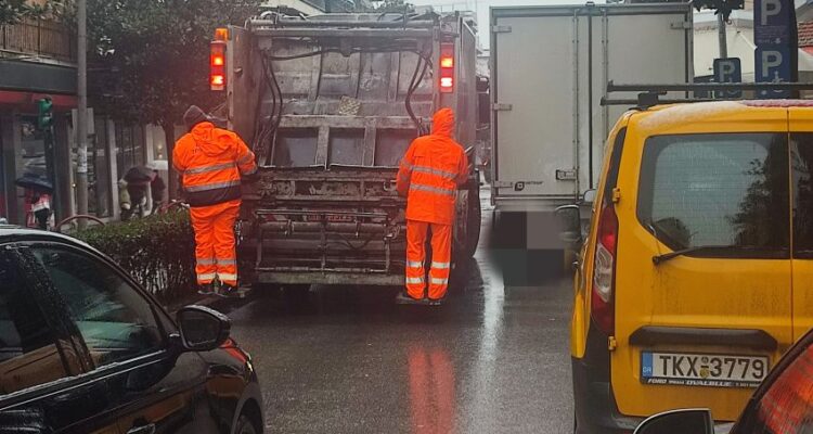 Πίσω από το απορριματοφόρο σχηματίστηκε μεγάλη ουρά αυτοκινήτων, με αποτέλεσμα να υπάρξουν εντάσεις και εκνευρισμοί.