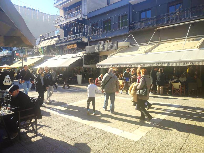 Χιλιάδες κόσμου, ντόπιοι και επισκέπτες, γέμισαν ασφυκτικά κάθε γωνιά της πόλης σήμερα, εκμεταλλευόμενοι και των άριστων καιρικών συνθηκών, που θύμιζαν περισσότερο Πάσχα παρά Χριστούγεννα.
