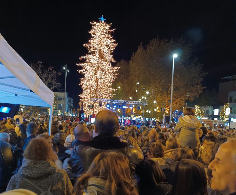 Πλημμύρισε από χιλιάδες κόσμου σήμερα η κεντρική πλατεία των Τρικάλων, κατά την διάρκεια της τελετής φωταγώγησης του ψηλότερου φυσικού χριστουγεννιάτικου δέντρου της χώρας.