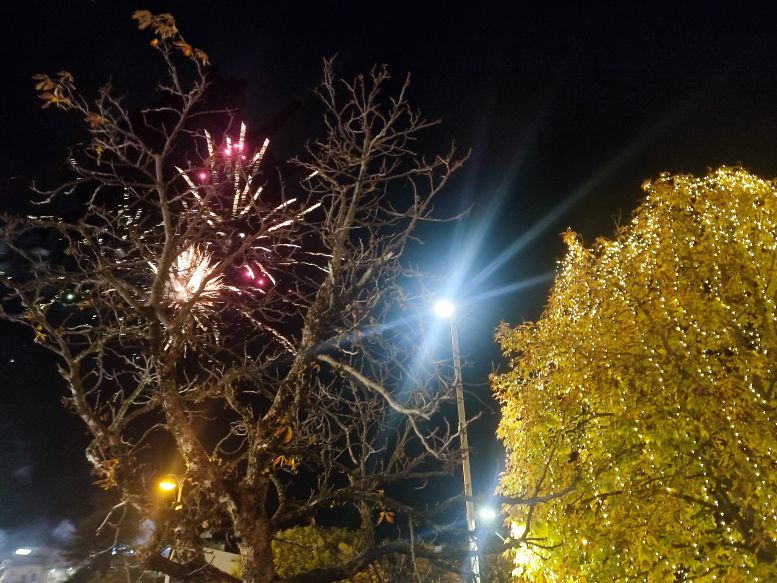 Τα δεκάδες βεγγαλικά που ακολούθησαν την φωταγώγηση του δέντρου, πρόσφεραν στον τρικαλινό ουρανό ενα εντυπωσιακό όσο και φαντασμαγορική θέαμα, που απόλαυσε ο κόσμος που είχε συγκεντρωθεί στη πλατεία.