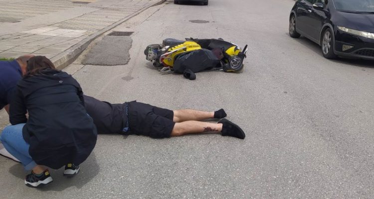 Τροχαίο ατύχημα με τραυματία διανομέα σημειώθηκε σήμερα το μεσημέρι στην οδό Καλαμπάκας στα Τρίκαλα