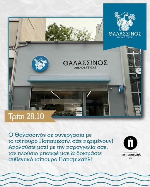 Αυτή την Τρίτη 28η Οκτωβρίου, ο Θαλασσινός υποδέχεται τους φίλους του σε μια ξεχωριστή γευστική εμπειρία, σε συνεργασία με το τσίπουρο Παπαμιχαήλ.