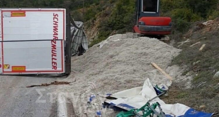 Τροχαίο ατύχημα σημειώθηκε το πρωί της Κυριακής στην Εθνική Οδό Καλαμπάκας – Παναγίας, στο ύψος της Ορθοβουνίου, όταν νταλίκα εξετράπη της πορείας της και ντελαπάρισε στο σημείο.