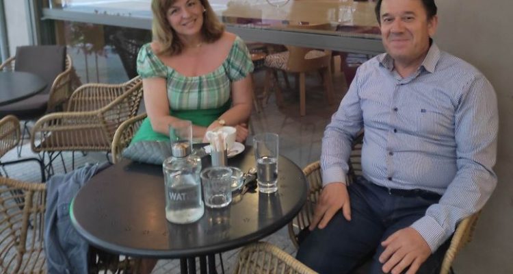 Παλιοί γνώριμοι ο Πρόεδρος του Συνδέσμου υδραυλικών νομού Τρικάλων Νίκος Βαλομάνδρας και η εκπαιδευτικός Έλενα Πλακώνα, συναντήθηκαν πρόσφατα στο γνωστό στέκι της πλατείας Δεσποτικού DEUX AMIS και είχαν τόσα πολλά να πουν.
