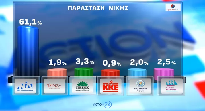 Η ΝΔ ενισχύεται σημαντικά στην παράσταση νίκης, με το 61.1% να πιστεύει ανεξάρτητα από τις κομματικές προτιμήσεις ότι θα κερδίσει τις επόμενες Βουλευτικές Εκλογές. Τον Ιανουάριο αυτό το ποσοστό ήταν 53.9%.