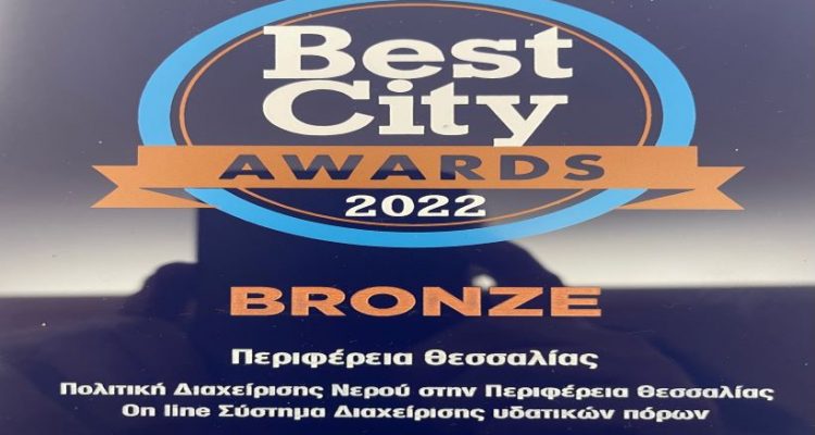 Ακόμη μια τιμητική διάκριση για την Περιφέρεια Θεσσαλίας, που βραβεύτηκε στα Best City Awards 2022, στην κατηγορία «Διαχείριση Υδατικών Πόρων/ On line Σύστημα Διαχείρισης υδατικών πόρων» για την πρότυπη πολιτικής της στη Διαχείριση Νερού.