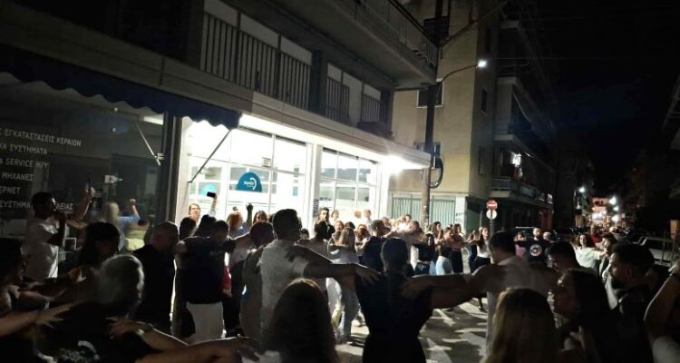 Ένα μεγάλο γλέντι στήθηκε το βράδυ της Κυριακής στη συμβολή των οδών Δεληγιώργη και Κανάρη στα Τρίκαλα, έξω από τις εγκαταστάσεις του “Χοροζήν”.