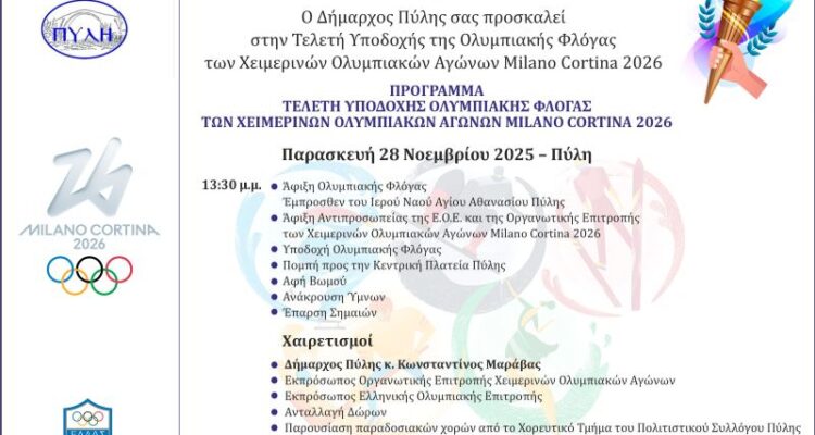 Υποδοχή Ολυμπιακής φλόγας στο δήμο ΠΥΛΗΣ 26/11/2025 Τοπικά - Θεσσαλικά Δημήτρης Παδιός ΠΡΟΣΚΛΗΣΗ – ΥΠΟΔΟΧΗΣ ΟΛΥΜΠΙΑΚΗΣ ΦΛΟΓΑΣ ΣΤΟΝ ΔΗΜΟ ΠΥΛΗΣ – ΠΑΡΑΣΚΕΥΗ 25 ΝΟΕΜΒΡΊΟΥ 2025 Ειδήσεις σήμερα Λαμπερή εκδήλωση: Ο Δήμος Μετεώρων ανάβει το Χριστουγεννιάτικο ΔέντροΤο trikalaIN.gr στη κτηνοτροφική μονάδα του Γρηγόρη Τζιότζιου 2 χρόνια μετά τον Daniel: Σαν να μην πέρασε μια μέρα…Η εξομολόγηση του Κουρέτα για τους παραβατικούς ανθρώπους και τις φυλακές μέσα από μια ταινία Δείτε όλες τις τελευταίες Ειδήσεις από την Ελλάδα και τον Κόσμο, τη στιγμή που συμβαίνουν, στο trikalain.gr