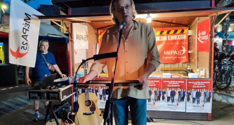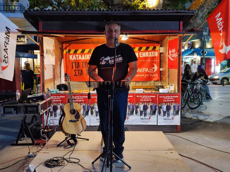Με επιτυχία πραγματοποιήθηκε το βράδυ της Δευτέρας στη πλατεία Δεσποτικού, μπροστά από το εκλογικό περίπτερο του κόμματος, η πολιτική εκδήλωση – μουσική συνάντηση που διοργάνωσε εκλογική επιτροπή Τρικάλων του ΜέΡΑ 25-Συμμαχία Για Τη Ρήξη, με κεντρικό ομιλητή τον τραγουδοποιό και υποψήφιο Βουλευτή του ΜέΡΑ 25-Συμμαχία για τη Ρήξη στη Β` περιφέρεια Θεσσαλονίκης, Δημήτρη Ζερβουδάκη.